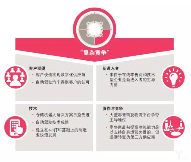 复杂竞争:当今,由于大型行业或零售客户及供应商不再仅仅进行自身物流管理,而是将这项技能转変为一种有利可图的商业模式,使之成为物流市场参与者,因此市场竞争正朝着一个不同的方向发展。