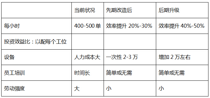 希望采用信息化的操作模式,信息互通,提高发货速度,提升发货效率,减少出错率,减轻员工的劳动强度,降低人力成本和培训成本。希望消除现有仓库的这些状况和环节,提高拣货正确率,并且不需要一直看电脑屏幕,不需要二次确认,使得配送效率有相应提升,打破公司在配送环节上瓶颈,帮助公司有更好的发展前景。希望每小时每个工位在现有400-500单提升到每小时每个工位600-700单。 |