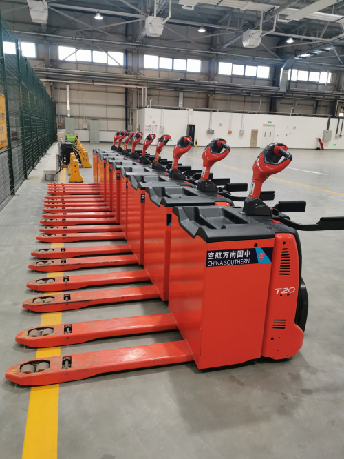 在南航的货运仓库区,每天都有许多航空快件中转运营,为客户提供各种货物的仓储、装卸、包装、运输等服务,尤其是遇到货运高峰期,基本是全天候作业。林德锂电电动托盘搬运车T20AP配备双承载轮,在不平地面上行驶时具有良好的可靠性。每根货叉均可承重2吨的货物而不变形。无论空载还是满载,1.5kW的交流电机保证叉车在启动和高速行驶时都有足够的动力。同时,搭载锂电池方案,从充电到用电环节全程无污染排放,绿色环保,为南航提供一个舒适的用工环境。