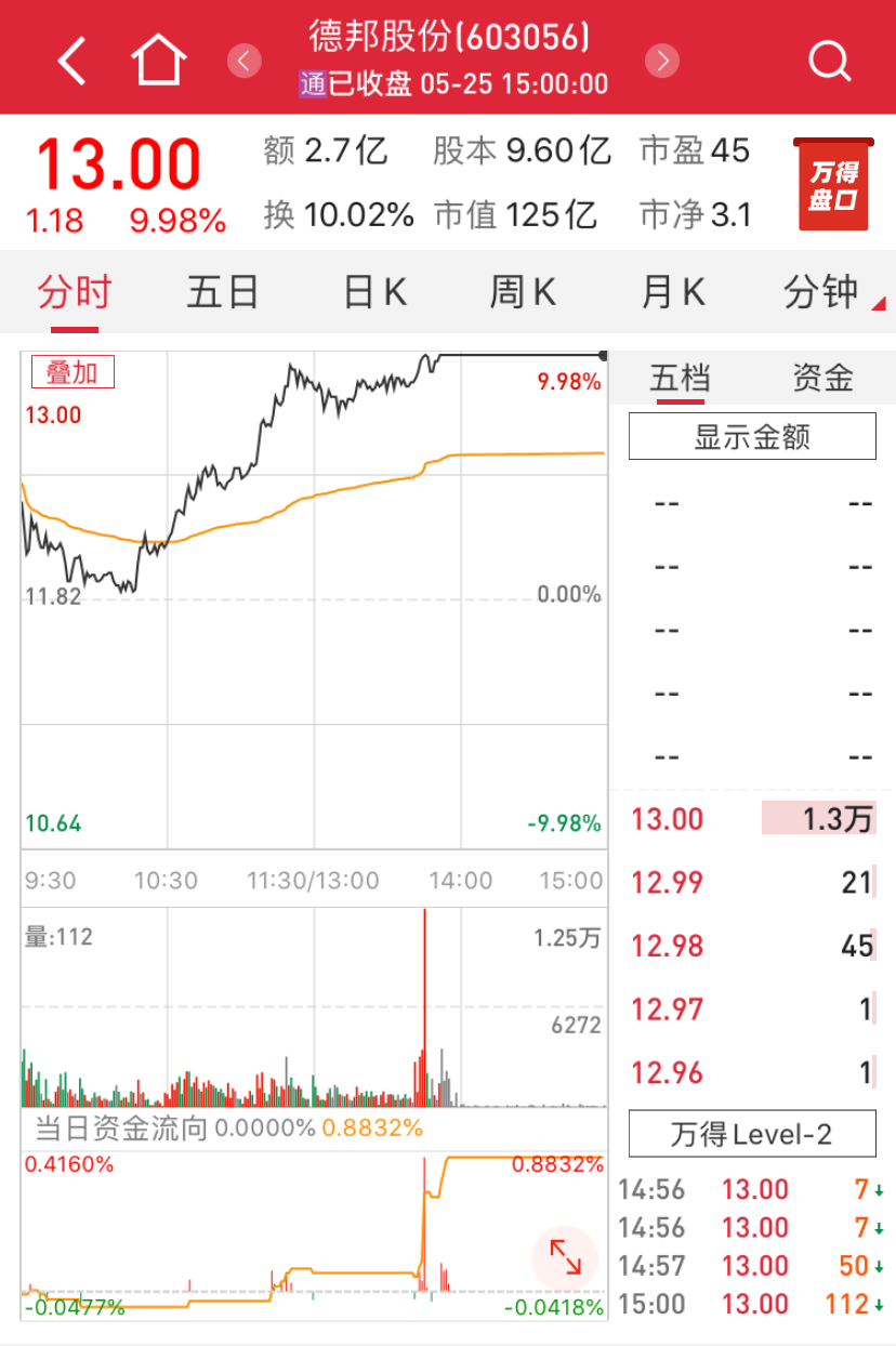 受该消息提振,今日德邦股份(603056.SH)早盘高开4%,随后虽小幅下滑,但临近尾盘强势涨停,报收13.00元/股,最新市值达125亿元。