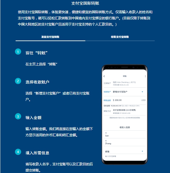 接收国内的汇款或者电汇回国内的银行账户。而且我最近还发现,它甚至可以支付赡家款到国内的支付宝账号,费用只需要每笔15美金!每笔收款限额最多为5万人民币,每年收款限额最多为50万人民币,而且,不占用你的换汇额度!