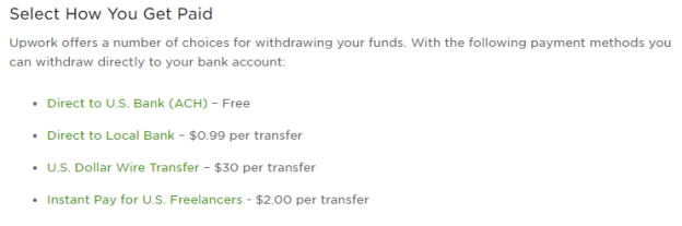 同样的,在Upwork上,你也可以看到,只有直接入账美国的银行账户才是免费的。