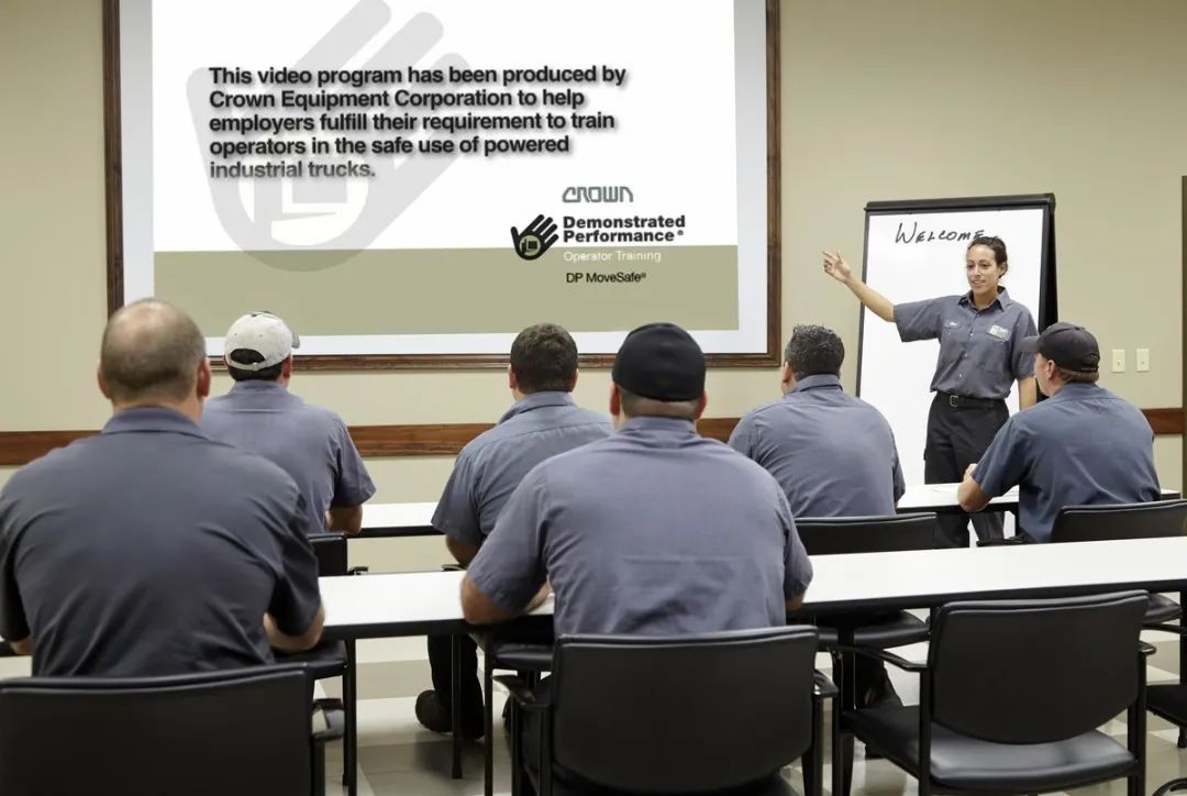 Crown-科朗为客户提供完善的 DP MoveSafe 操作员培训课程,由训练有素的叉车安全培训讲师现场讲授培训课程,借助清晰、易于理解和高度直观的视频和动画演示全面讲授电动工业叉车安全信息。尽可能延长动手实践时间,确保操作员接受内容涵盖叉车操作和任务绩效以及安全操作习惯和做法的培训。
