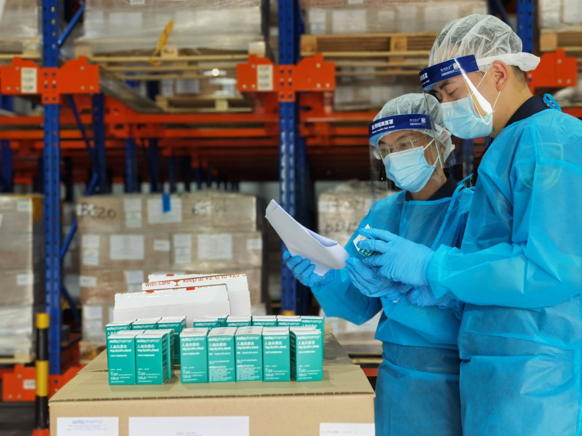 广州白云机场海关关员在白云机场综合保税区对一批进口人血白蛋白进行查验