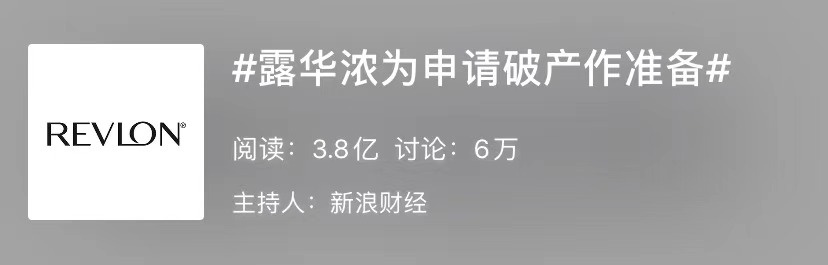 2020年双11,露华浓破产的消息登上热搜,引起近4亿人关注。