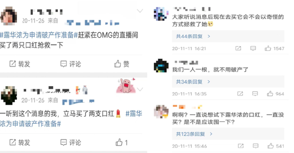 因此在2020年露华浓首次传出“破产”消息时,不少中国网友抢购“露华浓225口红”的风潮, “露华浓225”、“露华浓325”的话题,在热榜上待了2天一夜。