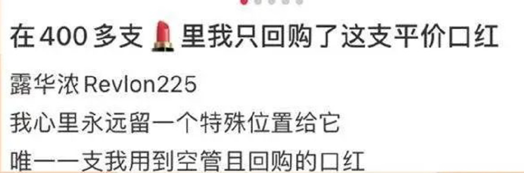 因为超级性价比,露华浓一进入中国市场,就被疯狂追捧,成了妈妈辈超级网红。