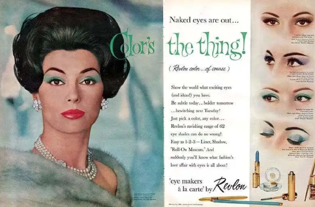 在化妆品都为省钱不打广告时,露华浓敢花钱请超模和大明星代言,像奥黛丽赫本、辛迪·克劳馥,把品牌和各种美女联系起来。