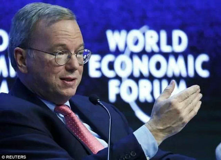 在这个名为“数字经济的未来”专家讨论小组中,除了施密特,还有Facebook首席运营官谢莉尔·桑德伯格(Sheryl Sandberg)和雅虎CEO玛丽莎·梅耶尔((Marissa Mayer)等人。桑德伯格承认科技既是工作的创造者,同时又是毁灭者,但她认为利大于弊。她与施密特赞扬互联网是让世界上更多的人发出声音的重要方式。