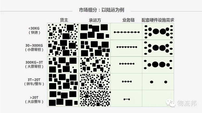 对物流行业稍有关注便不难了解到:首先,虽然快递这几年风头正劲,但它一直是物流体系中很小的一个细分,大宗如钢铁、煤炭等的流动才是物流的主要构成;其次,所有物流过程都会经历层层转包(如同建筑行业的转包,物流行业层次只多不少);再次,虽然表面上物流主体很多,具体到每一条运输线路,实际承运方只有那么固定的几个人、几辆车。看上去,这是一个非常适合被互联网改造的行业,不是吗?