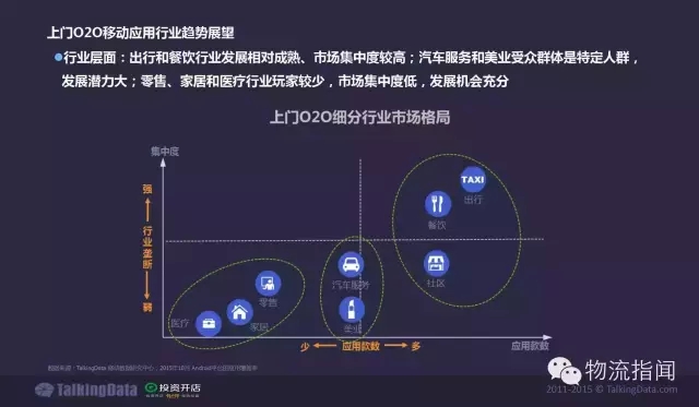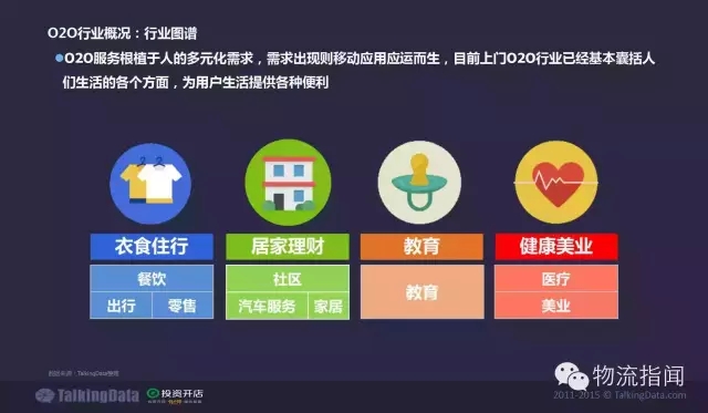 近日《2015上门O2O移动应用行业报告》发布。报告称:目前我国O2O经历四个发展阶段,目前正处于第四阶段:高速发展期,这一阶段一系列企业相继合并,以滴滴、快的,美团和大众点评的合并为代表,完成行业资源整合。商业并购和创新在持续发生。基于这样的大背景下,目前上门O2O行业已经基本囊括人们生活的各个方面,为用户生活提供各种便利,从衣食住行、居家理财到健康美业等方方面面的环节。