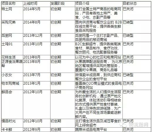 通过列表我们可以看到,死亡和转型的大部分是初创企业,且B2C企业为主,也有小部分B2B企业。如今生鲜电商已是大玩家的游戏,对于初创企业来说,机会并不多。
