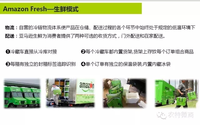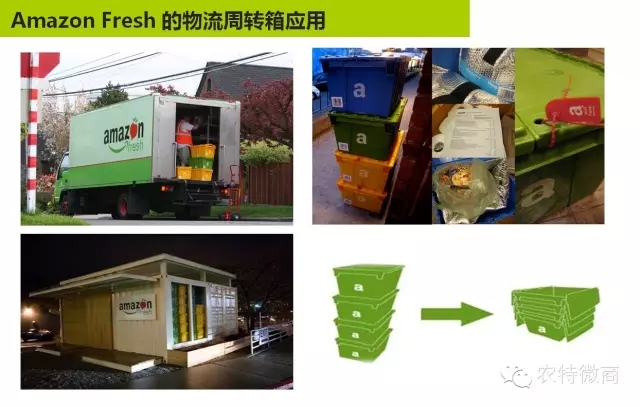 亚马逊会员的模式,因为亚马逊有图书,会员跟生鲜打包,形成综合性的体验模式,如果你是299美元,可以享受当日次日打折的服务,把这个体系激活带动其他的会员。这里有几个比较有意思的细节,刚才说了专用的冷藏车,按照单元化的组合配送。这边有一个追踪的系统,对每个单元化的存储做成折叠,回收的方面非常方便,这是每个城市边上有一个作业站,集过来做中转,这是亚马逊末端城市社区里面关于生鲜的作业站。