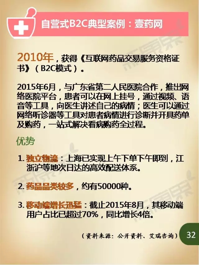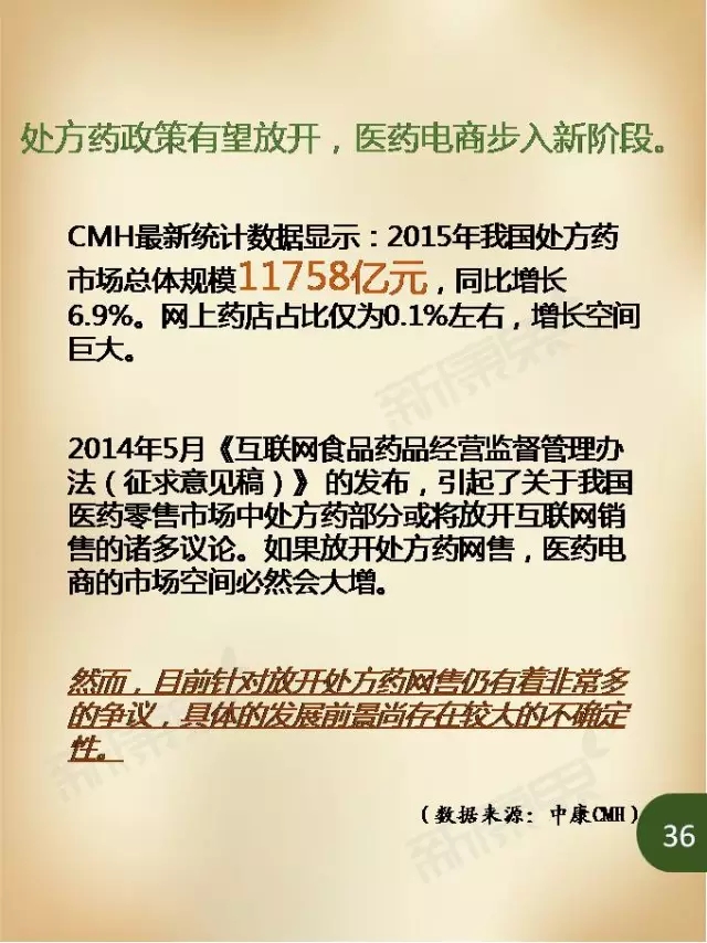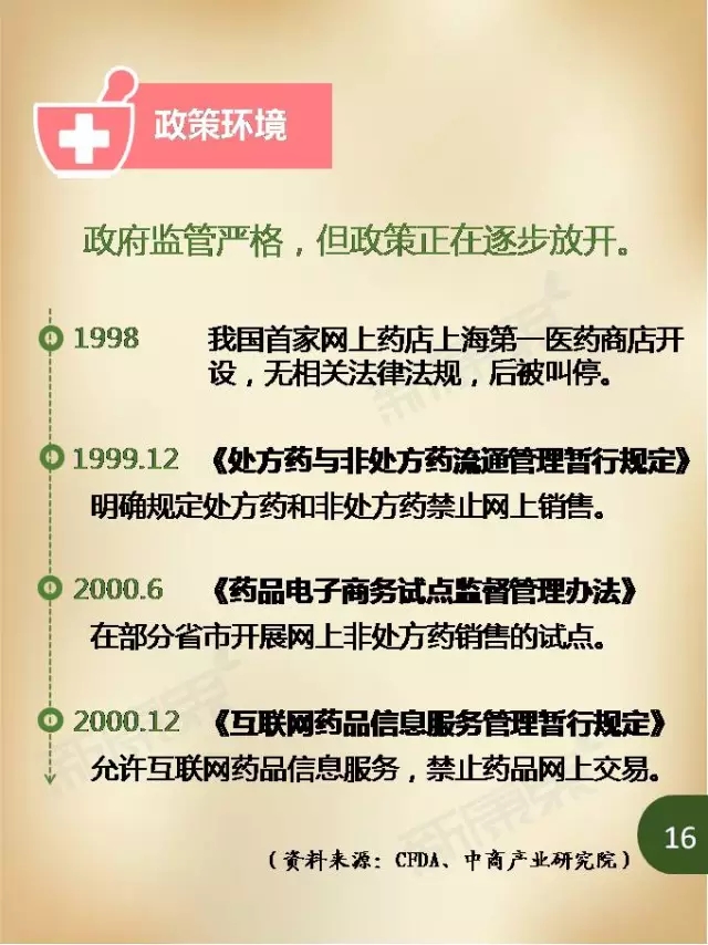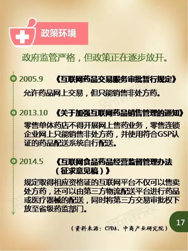 而放眼未来,随着网上药店医保支付试点的推进,以及业界对于网售处方药放开的期待,医药电商仍有巨大的发展空间。