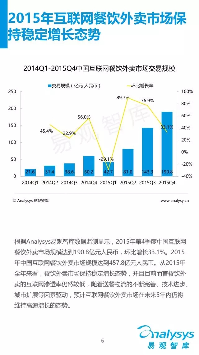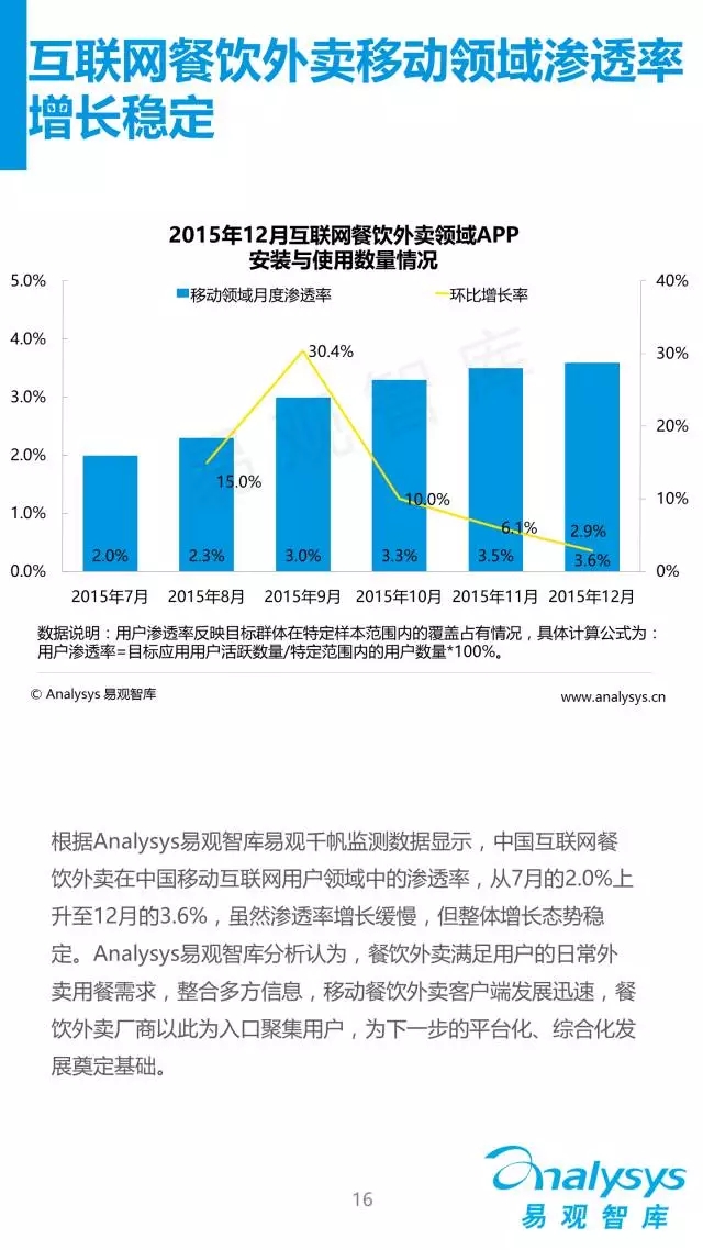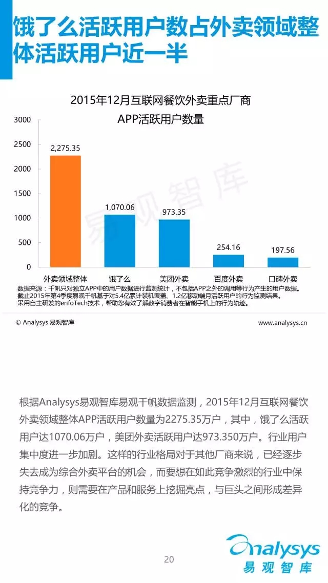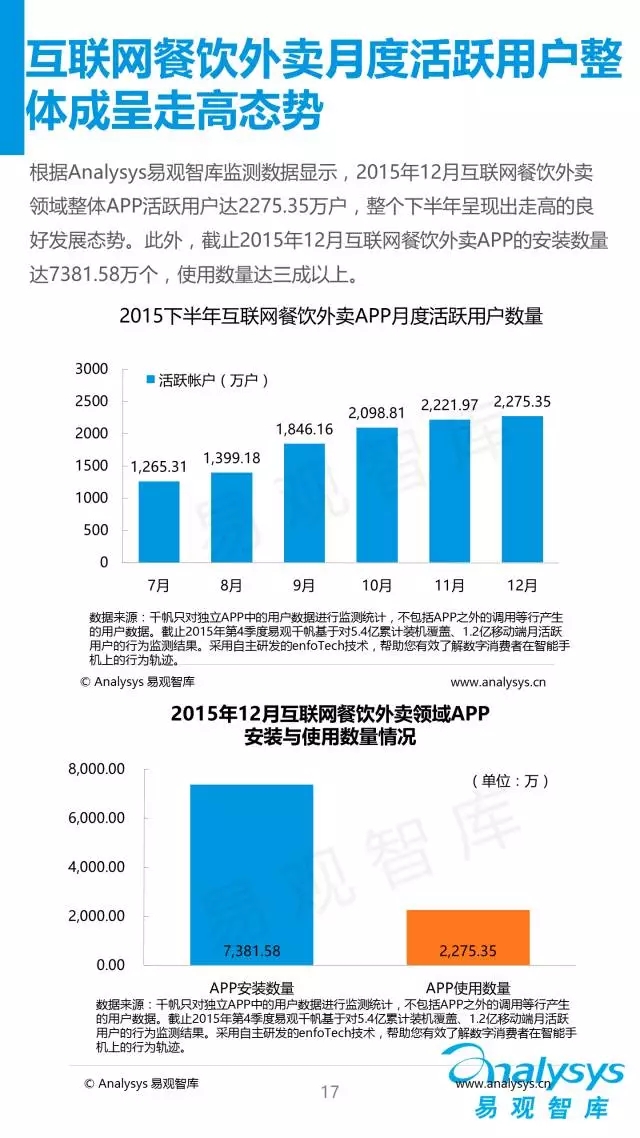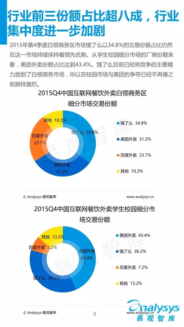 Analysys易观智库分析认为,各大外卖厂商在信息流架构上基本一致,功能也只略有差异。但外卖作为一个以服务为主要内容的产品,功能架构的优劣远不足以拉开与对手之间的差距,说服用户来自己平台消费最直接的还是外卖服务及品质的优劣。外卖的整个流程可以简化为用户下单、商户制作以及配送。在这三个环节中严格把控外卖餐品质量,加强商户管理,提升用户体验将更有利于餐饮外卖厂商的可持续健康发展。