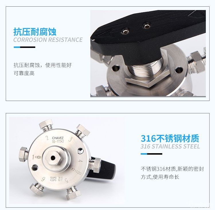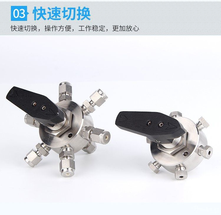 6.极其方便的流路设计方案,可以选择从一个入口有选择的转到六个出口,或者从六个入口到一个共同出口。