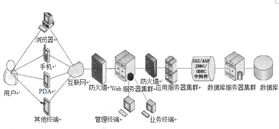 第三层是应用层,包括应用服务器和中间件层,是平台的核心和开发重点,应用服务器负责管理费用单一用户的物流作业流程并直接组织用户群体的业务进行,承担着物流服务信息收集、管理,通过Web服务器与Internet上的浏览器或无限协议的终端连接,获知用户的需求。中间件将平台中各种不同的计算机、服务器、PDA和手机等浏览器的硬件和平台的软件系统屏蔽,同时中间件层负责分割应用服务器和数据层,并提供一定的底层服务,例如负载均衡、状态监视等,保障数据层与应用服务喊叫支接触过程中的数据安全性、完整性。
