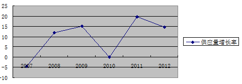 图7:2006年—2012年度烟草原料供应量增长速度(单位:%)