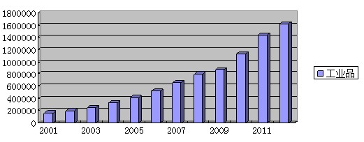 图2:2001年-2011年中国工业品物流总额增长分析(单位:亿元)