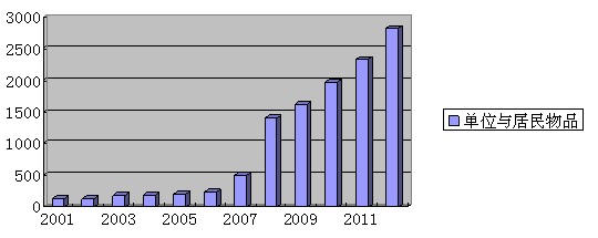 图3:2001年-2012年中国单位与居民物品物流总额(单位:亿元)