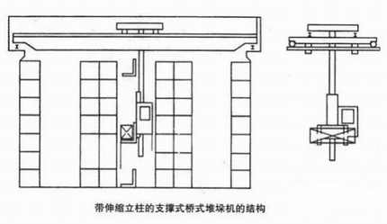 货架和仓库顶棚之间需要有一定的空间,保证桥架的正常运行。立柱可以回转,保证工作的灵活性。回转小车根据需要可以来回运行,因此桥式堆垛机可以服务于多条巷道。桥式堆垛机的堆垛和取货是通过取物装置在立柱上运行实现的,因为立柱高度的限制,桥式堆垛机的作业高度不能太高。